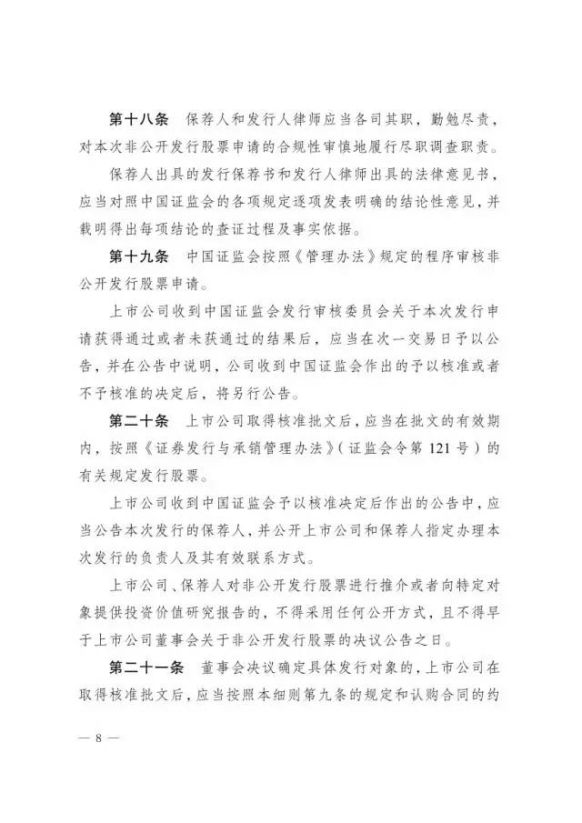 证监会完善上市公司非公开发行股票规则 规范上市公司再融资