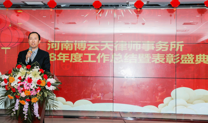 首席合伙人唐有良律师的致辞拉开了年会序幕。他号召大家秉持执业、学术、公益三位一体的职业发展理念,走现代律所管理之路,用专业方法办专业案件,立足河南,走向全国,共铸博云天法律品牌,为客户和社会各界贡献更多更优质的法律服务。